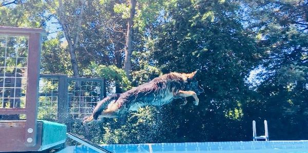 Dock diving is a dog sport in which dogs compete in jumping for distance or height. This activity is perfect for active, energetic dogs who require mental/physical stimulation and discipline. All breeds are welcome