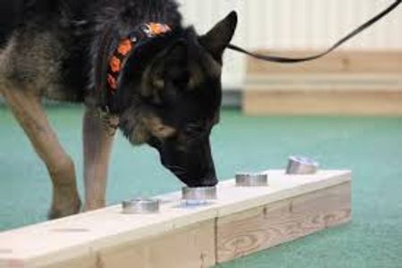 A fun way to build a dogs hunt drive instinct through scent detection training. Dogs learn how to search for a specific odor or odors and find the source. This activity builds problem solving skills, provides mental stimulation, and confidence building
